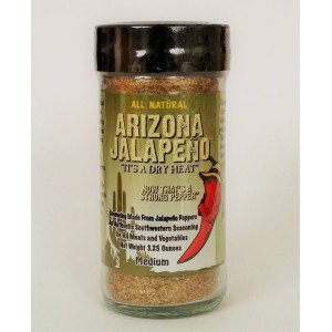 ARIZONA JALAPEÑO - This medium flavored seasoning packs a bunch in such a little bottle. Use on just about anything that you want to kick up a notch or two. Keep in mind that the more you add the hotter it gets. This bottle will last a long time with regular use. This is a seasoning blend that is about 95% Jalapeno with a very low salt content.