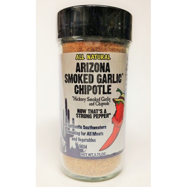 ARIZONA SMOKED GARLIC CHIPOTLE - We discovered a special garlic powder that is smoked with real, natural hickory smoke and not flavored with artificial flavoring. We combined it with our special chipotle that makes it a great seasoning for veggies, seafood, beef, pork and poultry. This is a seasoning blend that has a very low salt content.